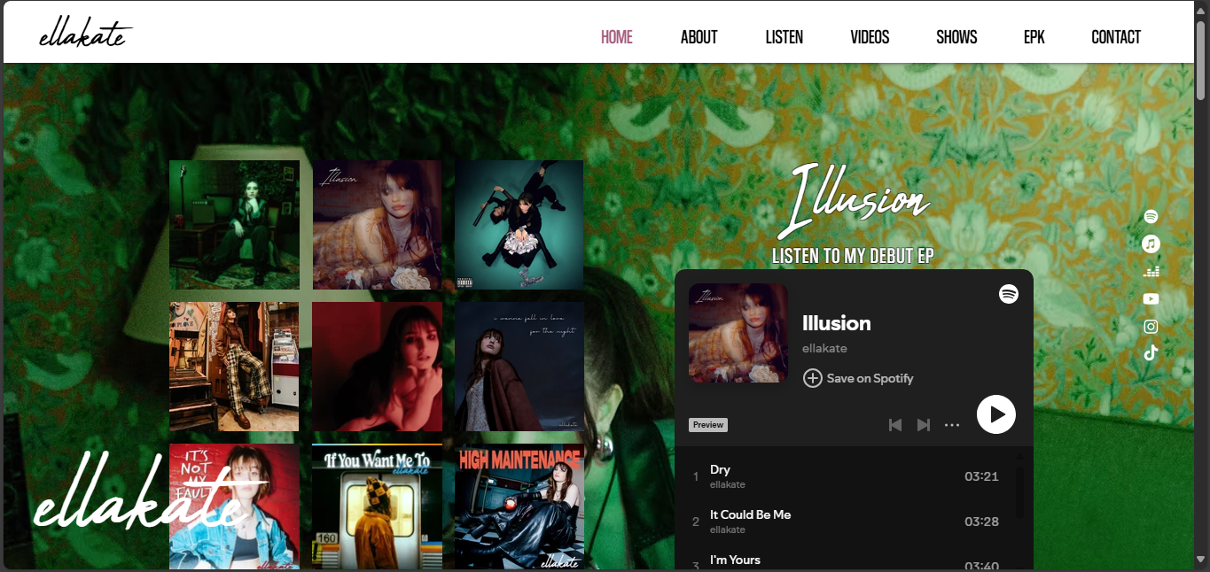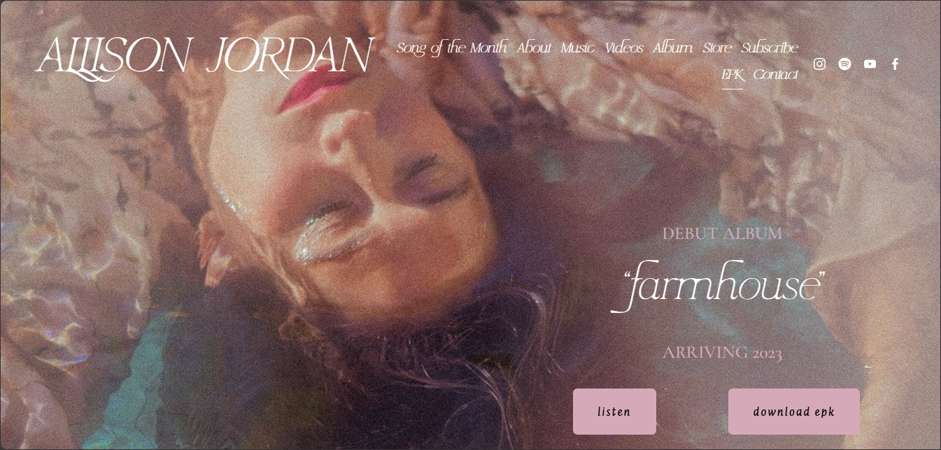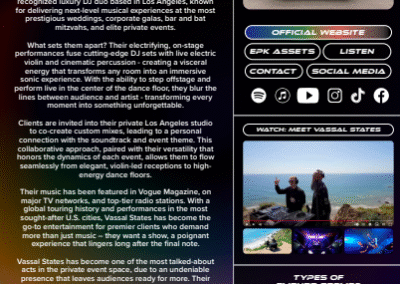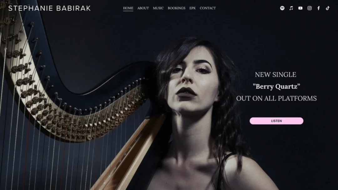 A fully customized, mobile-optimized artist website combining brand presentation and professional EPK functionality.